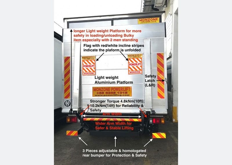 Rear installed cantilever lift with 4 cylinders. The use of high resistance steel allows a load capacity of 800 kg and very light weight of the frame. Normally applied to light and medium range vehicles is ideal for local distribution and daily use. Quickness in loading and unloading operation is guaranteed.